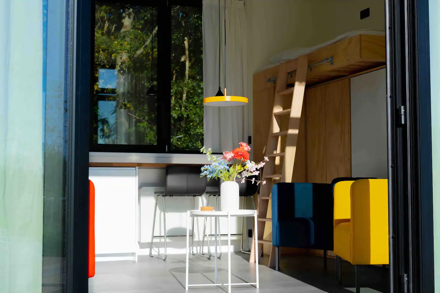 De Micro Home bestaat uit een badkamer en een woon-kook-slaap ruimte. Buiten kan je op eigen terras genieten van de ochtend- en middagzon. Ook is het mogelijk om een wandeling te maken door het bijbehorende bos of om in het thee-huisje langs de vijver te picknicken. Op 10 minuten fietsafstand bereik je het centrum van de Hanzestad Kampen, waar je gezellig kan winkelen of de cultuur kan opsnuiven. Met de auto is het oude centrum van Zwolle te bereiken in 20 minuten. Ook is er een supermarkt op loopafstand.